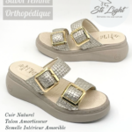 - Semelle de propreté: Semelle amovible entière en EVA, souple, pré-galbée suivant l’ergonomie du pied assurant ainsi le confort du pied renforcé avec une talonnette au niveau de calcanéus du pied pour plus de confort. Elle est entièrement recouverte en cuir.
